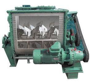 本系列混合機以強烈、高效混合為特點、臥式筒體內兩根攪拌等速反向旋轉,軸上特殊布置的槳葉確保物料徑向、環向、軸向三向運動,形成復合循環,在極短的時間內達到均勻混合
